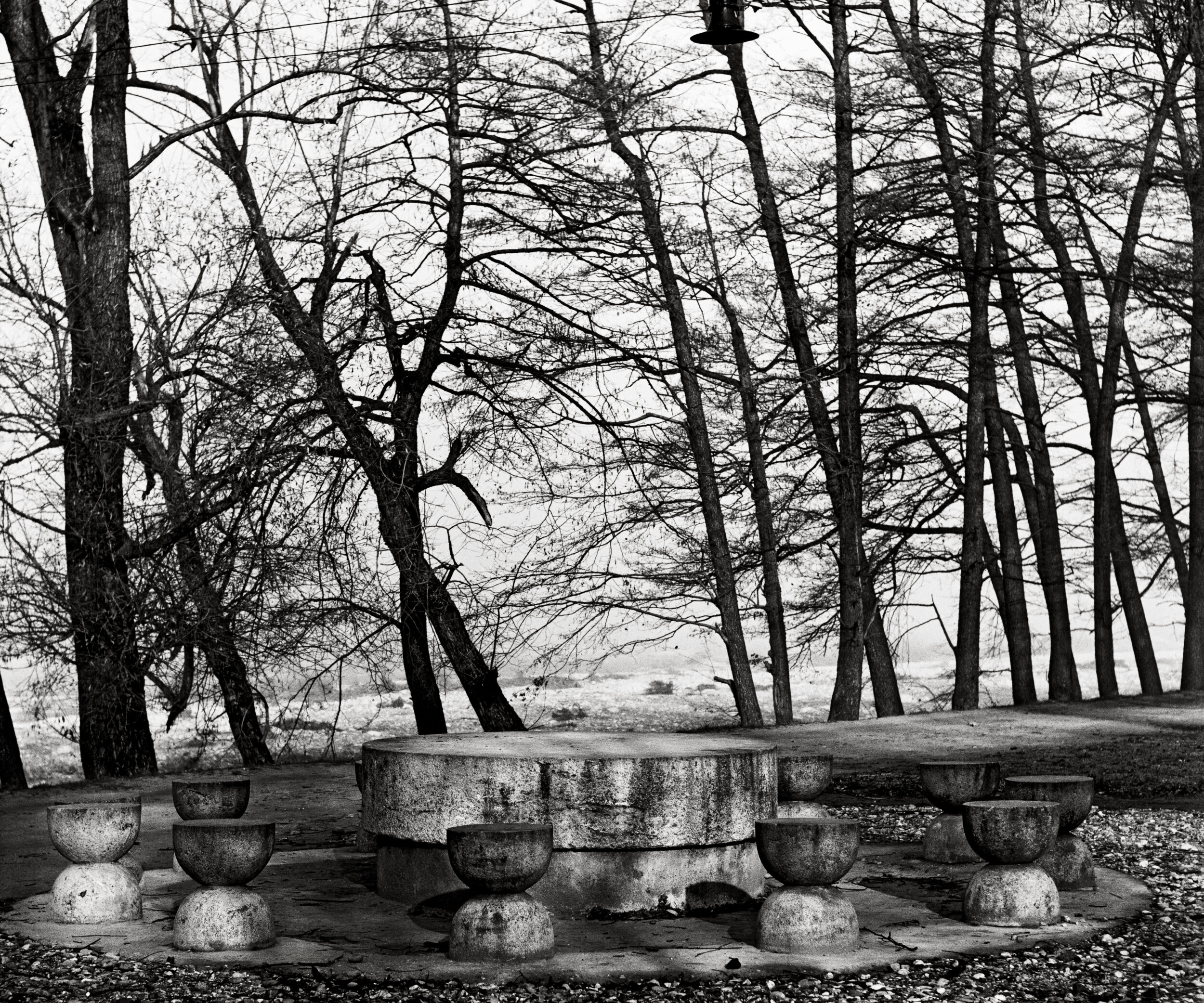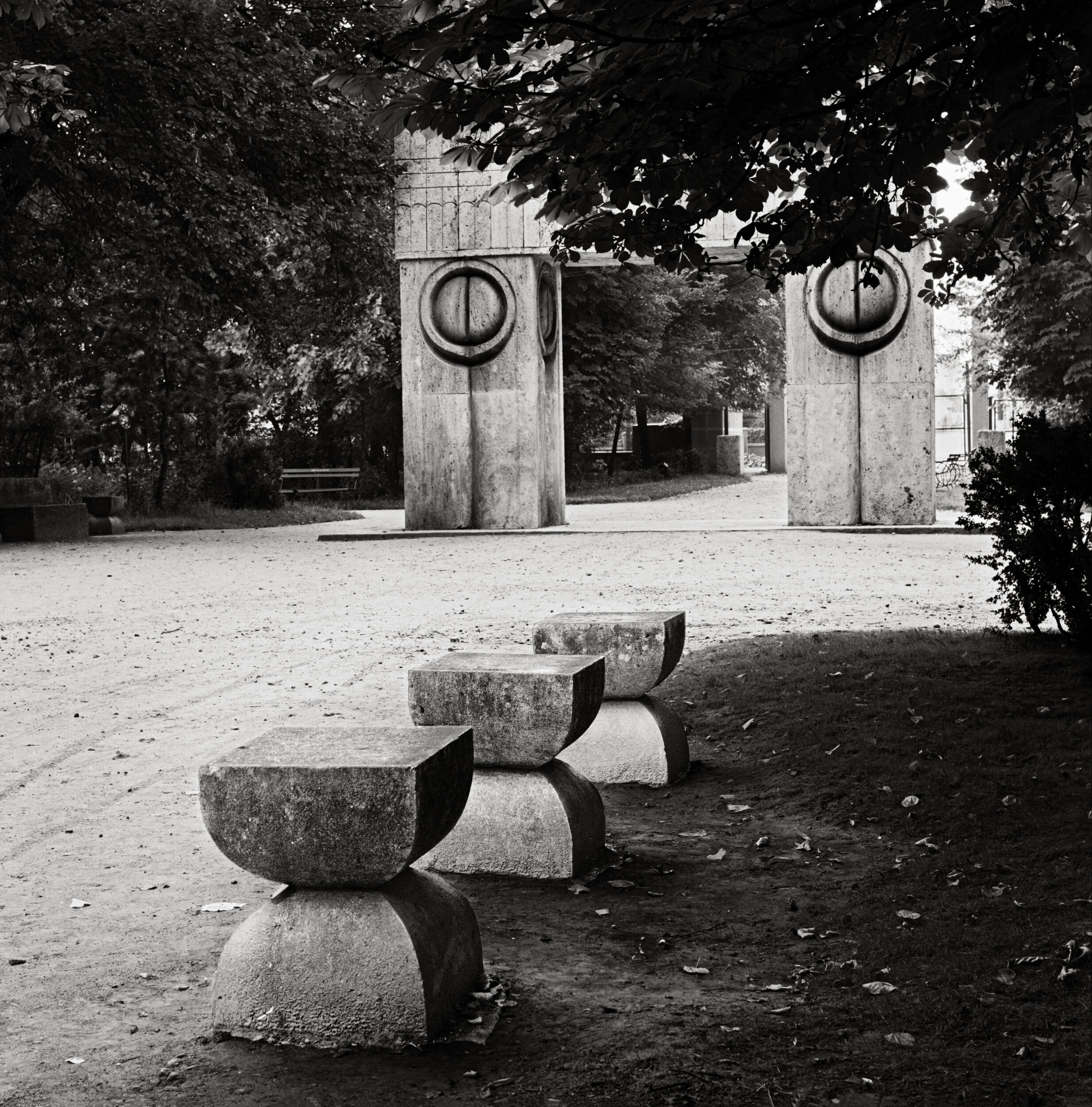 Un projet où deux regards d’artistes se font écho à travers des photographies en noir et blanc et en couleur de l’ensemble monumental de Brâncuși, révélant dialogues, rythmes et résonances. L’ensemble monumental de Târgu Jiu, conçu par Constantin Brâncuși et inauguré en 1938, relie sculpture et paysage en un parcours symbolique dédié à la mémoire, à l’amour et à l’infini. Inscrit au cœur de la ville. Il fait aujourd’hui partie du Patrimoine de l’UNESCO. Dan Er. Grigorescu (1917, Roumanie – 1990, Paris) est un photographe roumain, auteur de nombreux livres. En 1982, il participe à la Biennale de Venise où ses photographies des œuvres de Brâncuși sont exposées au pavillon roumain. Mircea Cantor (1977, Roumanie), lauréat du prix Marcel Duchamp 2011, est un artiste contemporain dont la pratique polymorphe explore poésie visuelle, frontières et liberté, entre film, dessin, installation et performance.