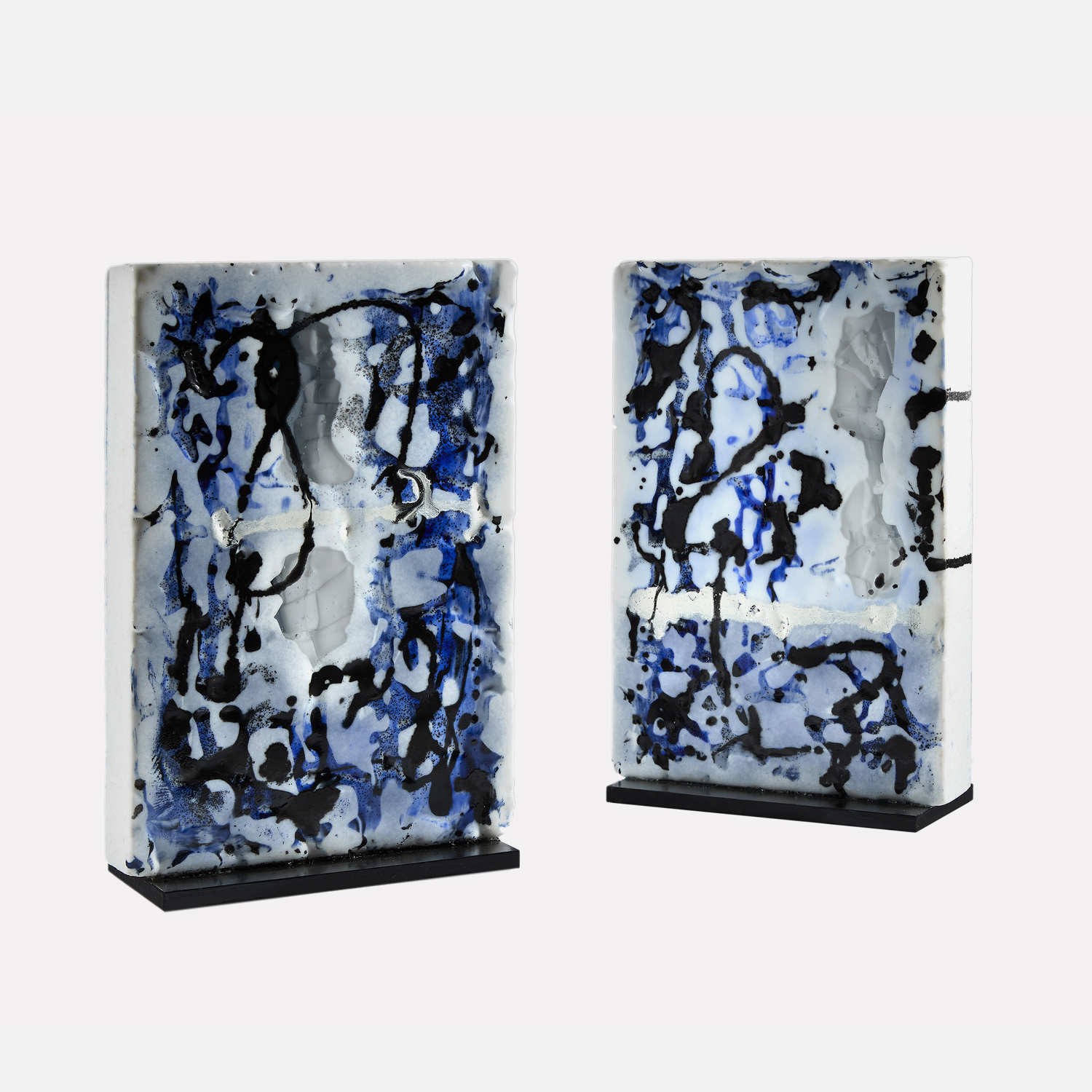Martine and Jacki Perrin have built their life and work together since 1967. The early direction of their practice led them toward ceramics and calligraphy, which they studied under the Korean artist Ung No Lee. It was in the 1990s that they developed an interest in glass. And starting in 1998, they frequently taught at the Sars-Poterie summer glass universities. Their works reference calligraphy, poetry, and music. Through the play of light and transparency in these scriptural and musical constructions, they analyze gesture, celebrate life, and question the passage of time.