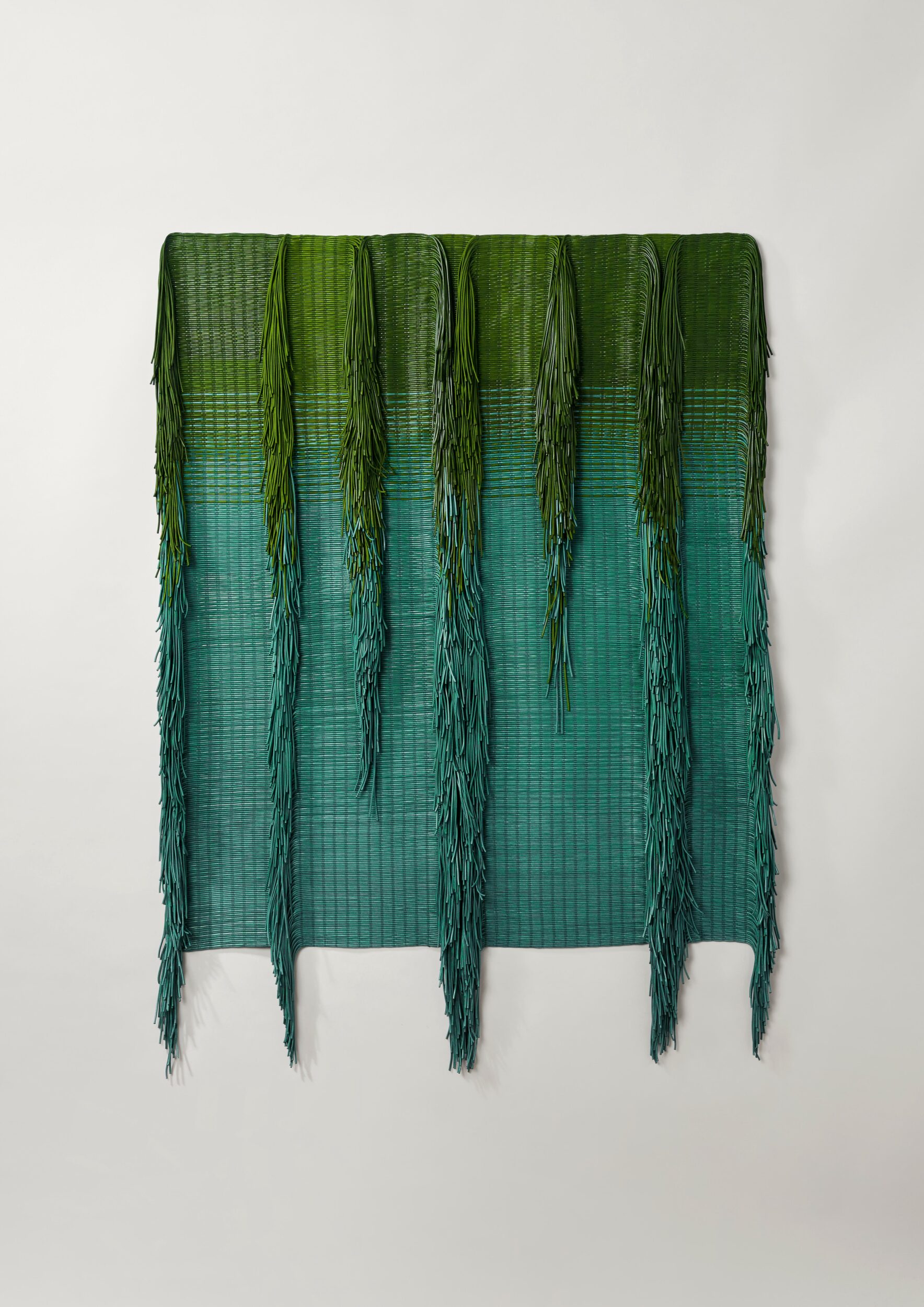 Ulrika Liljedahl’s Swedish roots endow her with a curiosity and ability to observe nature that permeates all of her creations. Her inspiration is the living. This is reflected in her work through the use of materials such as horsehair or leather, but also through the use of natural and synthetic materials. At the core is her ability to use the material’s distinctive characteristics, working around their constraints and introducing new and surprising forms of expression. Her works are designed to be the quintessence of the materials she exalts, playing on their intrinsic movements and contained vibrations. She instinctively harnesses the colours she chooses and carefully positions, creating breathtaking swirling gradations. Her works are always elegant, crafted like haute-couture pieces that have been removed from their context. Suspended in the air or placed on the ground, they are fuelled by their duality: their presence is strong and enveloping, the subtlety of the details is pervasive, acting like a fantasy enhancer.
