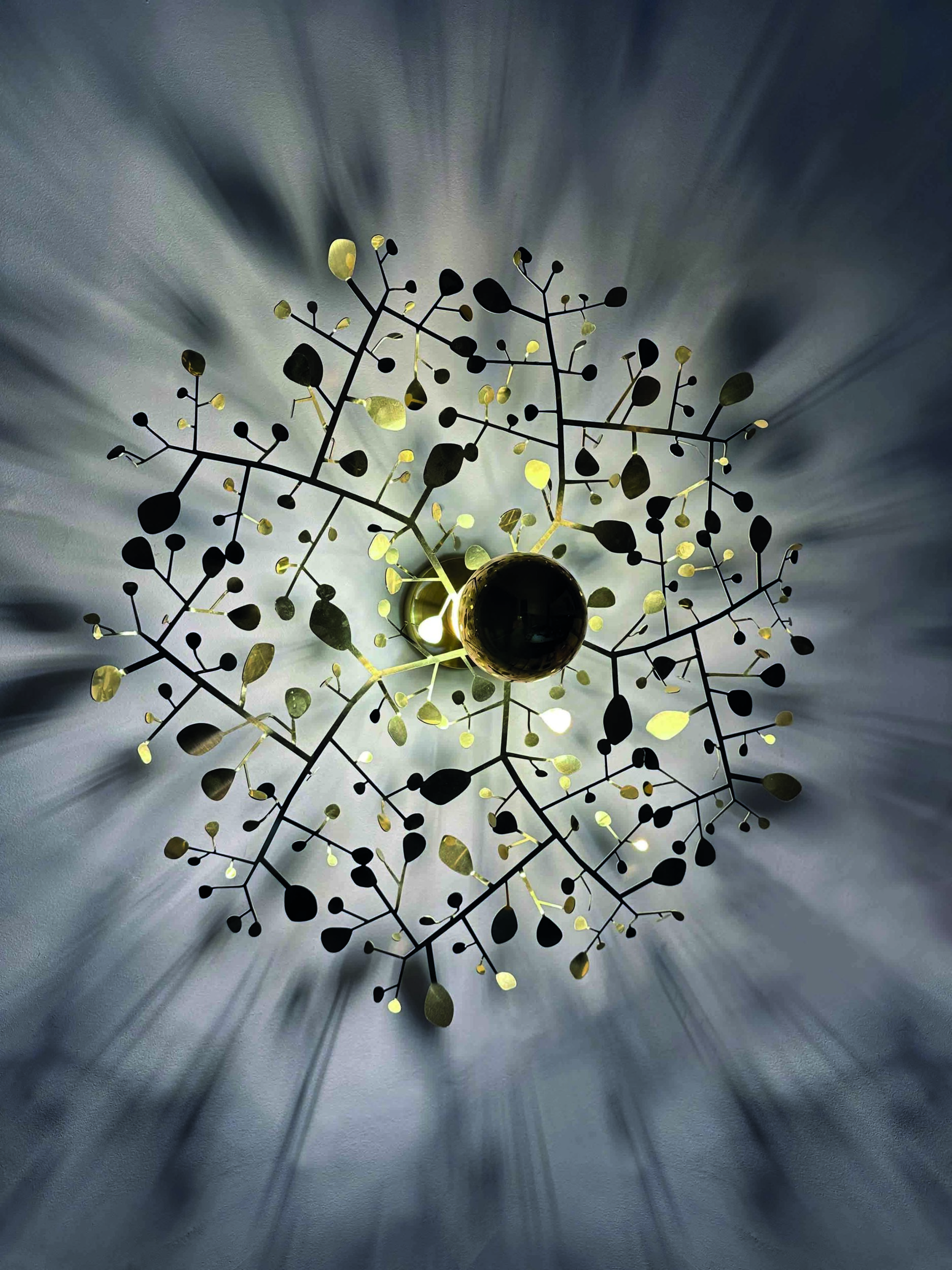 Éric de Dormael is an unconventional artist, his trajectory far from the beaten track. Trained at the Saint-Luc school in Tournai and at the Atelier Met in Penninghen, he explored many creative avenues before devoting himself to designing luminaires. His exceptional, limited-edition pieces gradually took on monumental proportions. He began working for interior decorators and designers, and in the world of luxury. With passion and rigour, his work progressively freed itself from any utilitarian function, crossing the line from object to work of art, creating veritable light sculptures. Deeply attached to design and pure lines, he places fundamental importance on the architectural structure of each piece. Brass, a noble and pliable material, along with plaster or bronze enables him to make light and shadow meet.  Light, poetic and glistening, his works are both material and immaterial.