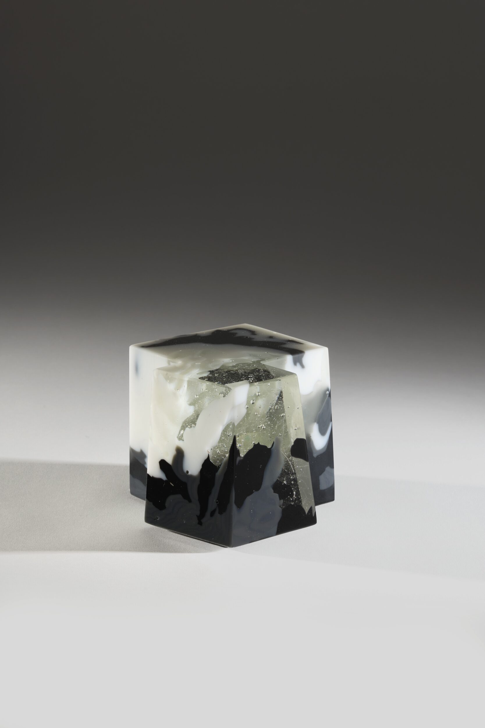 Martine and Jacki Perrin sculpt together as one, forming a duo enriched by their individualities. For over a decade they have explored the potential of ceramics in parallel with their practice of Far Eastern calligraphy. Glass became their preferred medium and they developed the unique method of “Build-in-Glass” which allowed them to constantly explore new boundaries and to continuously develop and renew their work. They create dense and compact blocks in which they sculpt both monumental and more intimate pieces, in unique shapes and colours. One of the distinguishing features of their work is the constant play on transparency, porosity and above all, light. They find their inspiration in scriptural and musical constructions, as well as in the revelation of geological processes or phenomena. Their work, born out of the four elements, has an intrinsic coherence and a unique beauty.