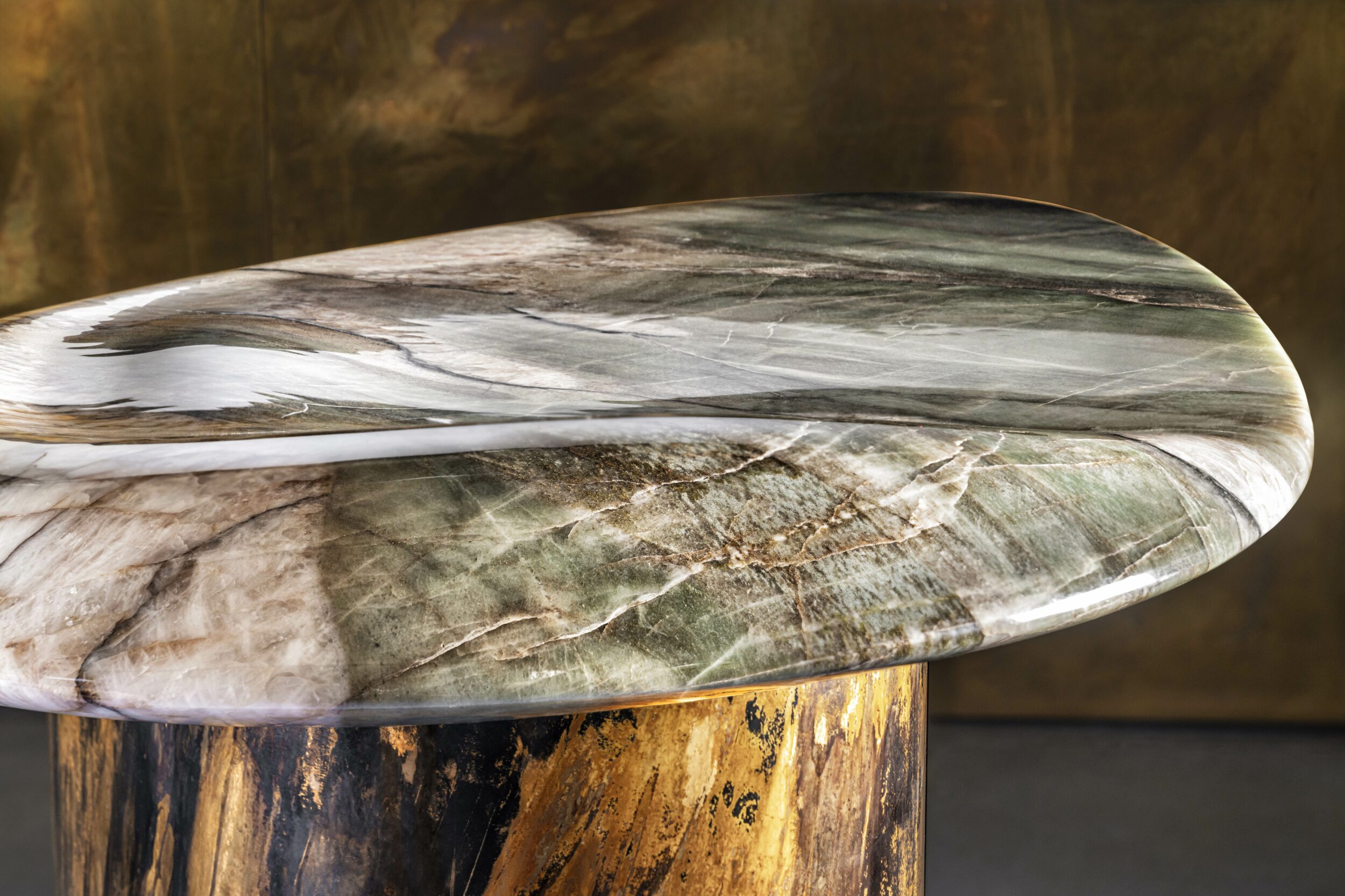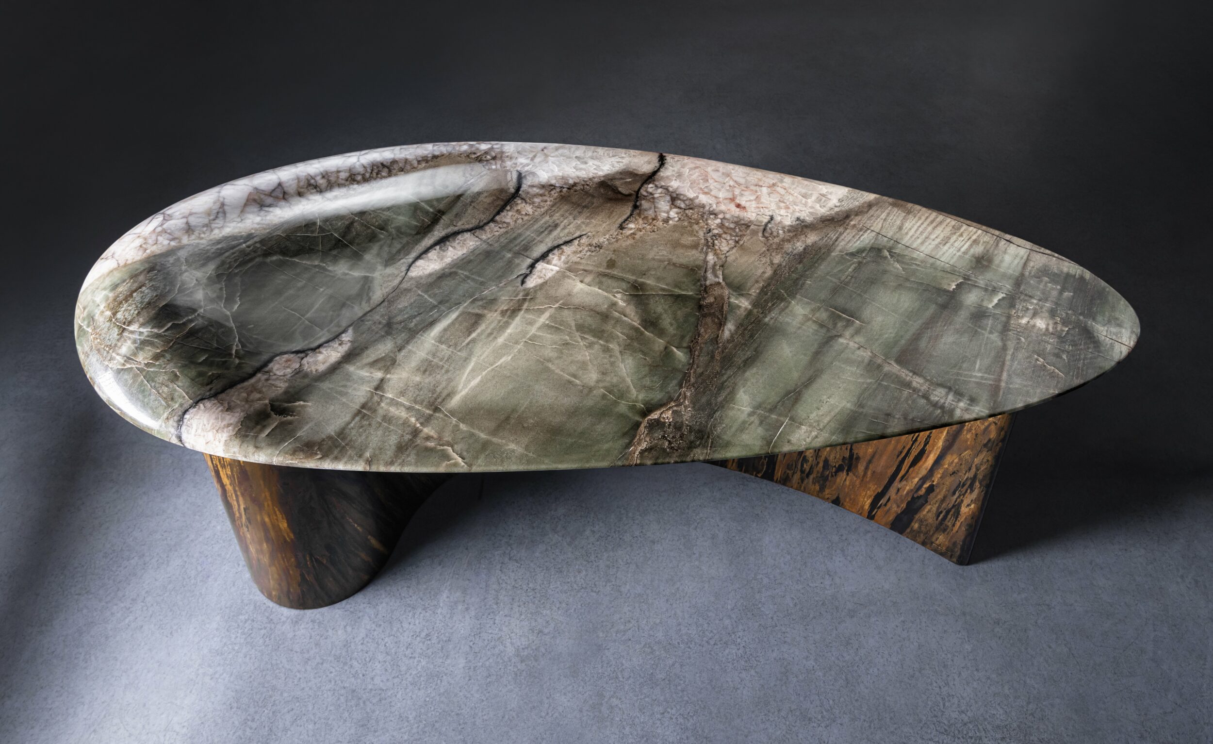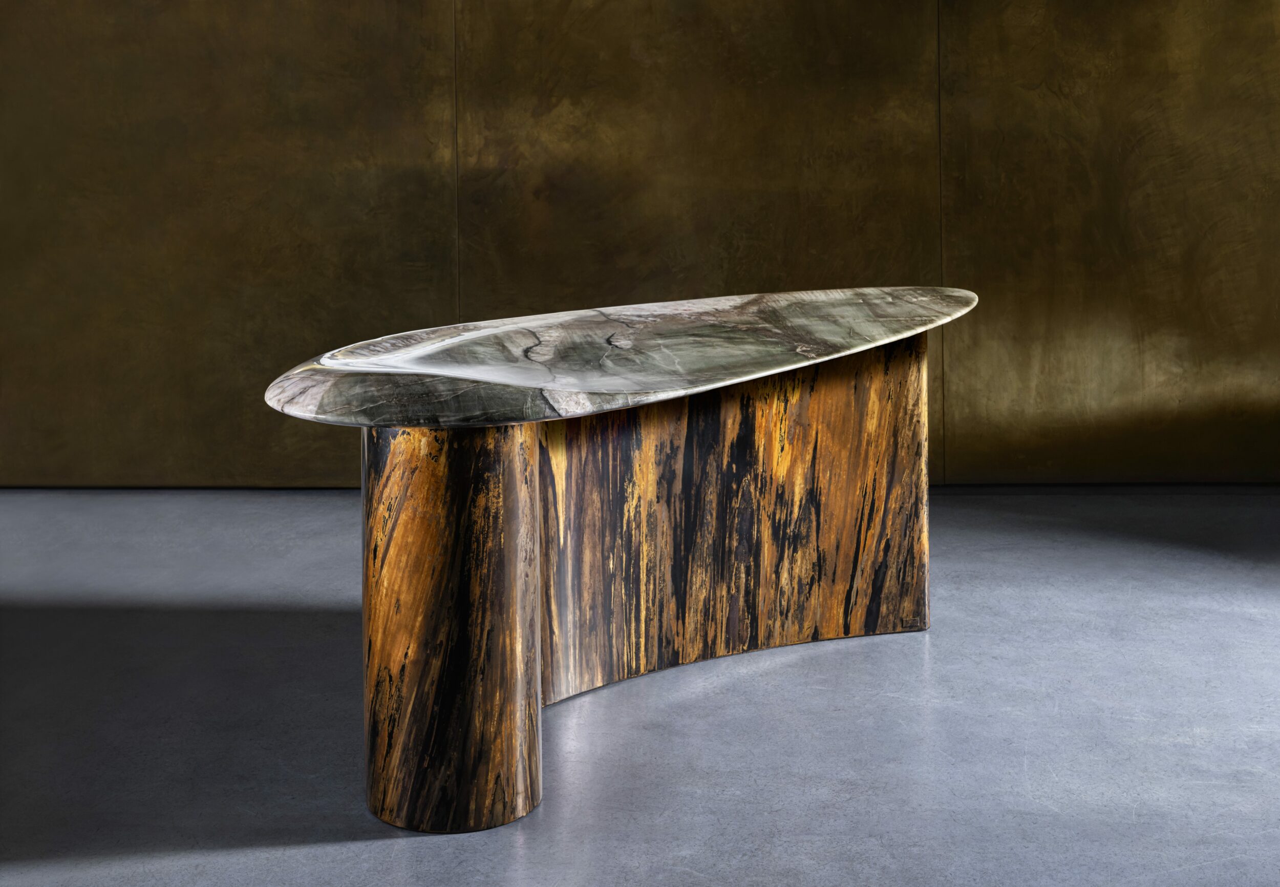 Milanese artist Gianluca Pacchioni developed a passion for metal work in the 1990s while frequenting the artistic scene in Paris. An autodidact, he returned to Milan and perfected his skills working with Italian craftsmen. Forging steel himself in his workshop, he began working with bronze, brass and aluminium to create limited edition sculptures and furniture.  Constantly experimenting, his innovations involve liquid metals and patinas. The pieces he creates show the contrast between raw materials – metal of course, but also stone or concrete – and the resulting beauty that is born from the artist’s skill and sensitivity.  Likewise, light plays a fundamental role in his works. It amplifies the forms of expression, making them both visible and uncertain. The sculpture reveals the inner self.