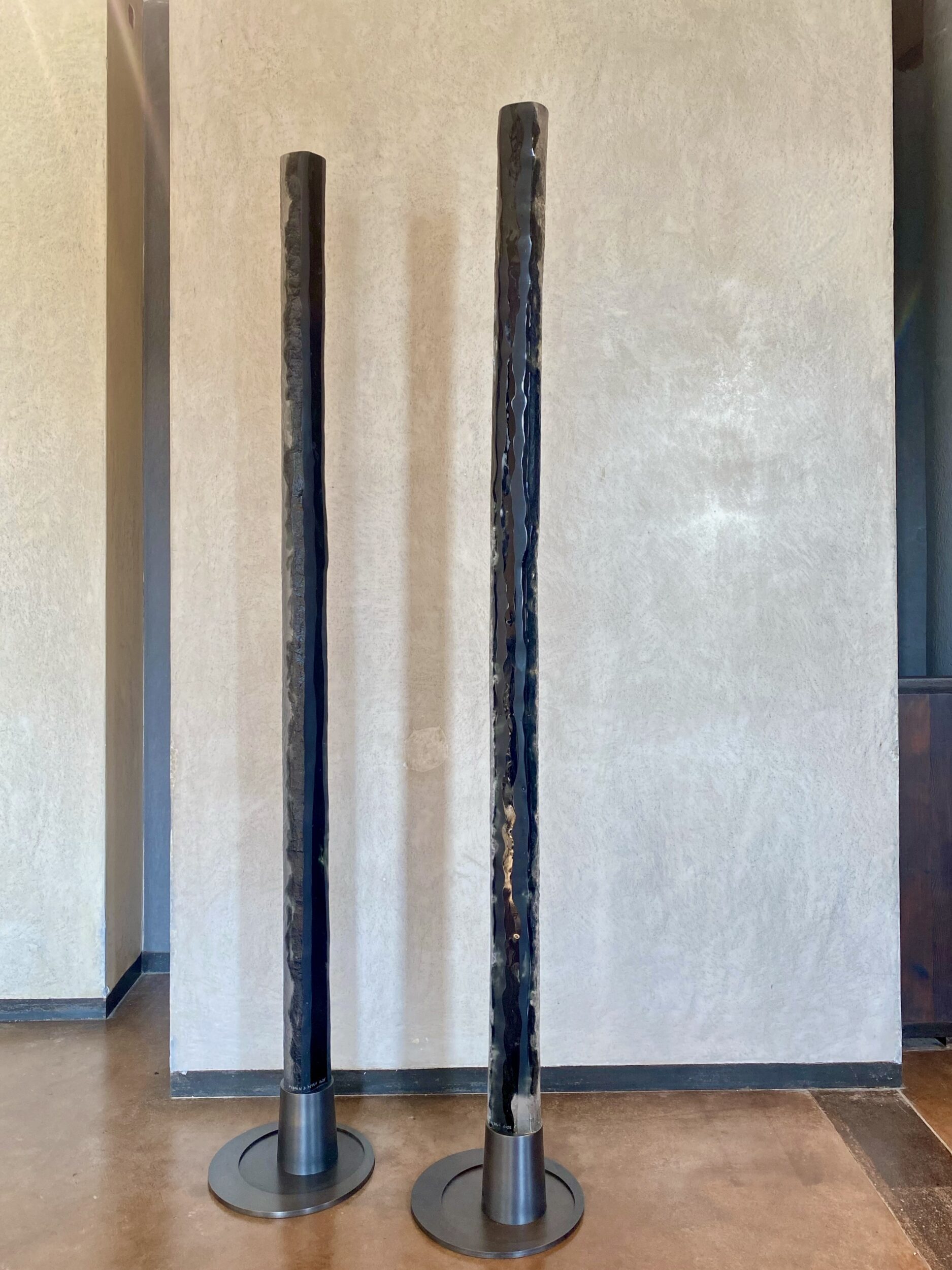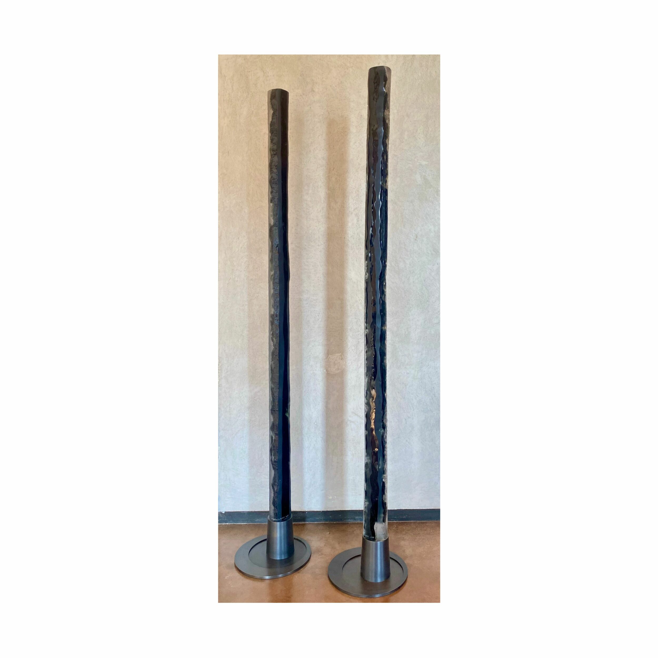 Martine and Jacki Perrin sculpt together as one, forming a duo enriched by their individualities. For over a decade they have explored the potential of ceramics in parallel with their practice of Far Eastern calligraphy. Glass became their preferred medium and they developed the unique method of “Build-in-Glass” which allowed them to constantly explore new boundaries and to continuously develop and renew their work. They create dense and compact blocks in which they sculpt both monumental and more intimate pieces, in unique shapes and colours. One of the distinguishing features of their work is the constant play on transparency, porosity and above all, light. They find their inspiration in scriptural and musical constructions, as well as in the revelation of geological processes or phenomena. Their work, born out of the four elements, has an intrinsic coherence and a unique beauty.