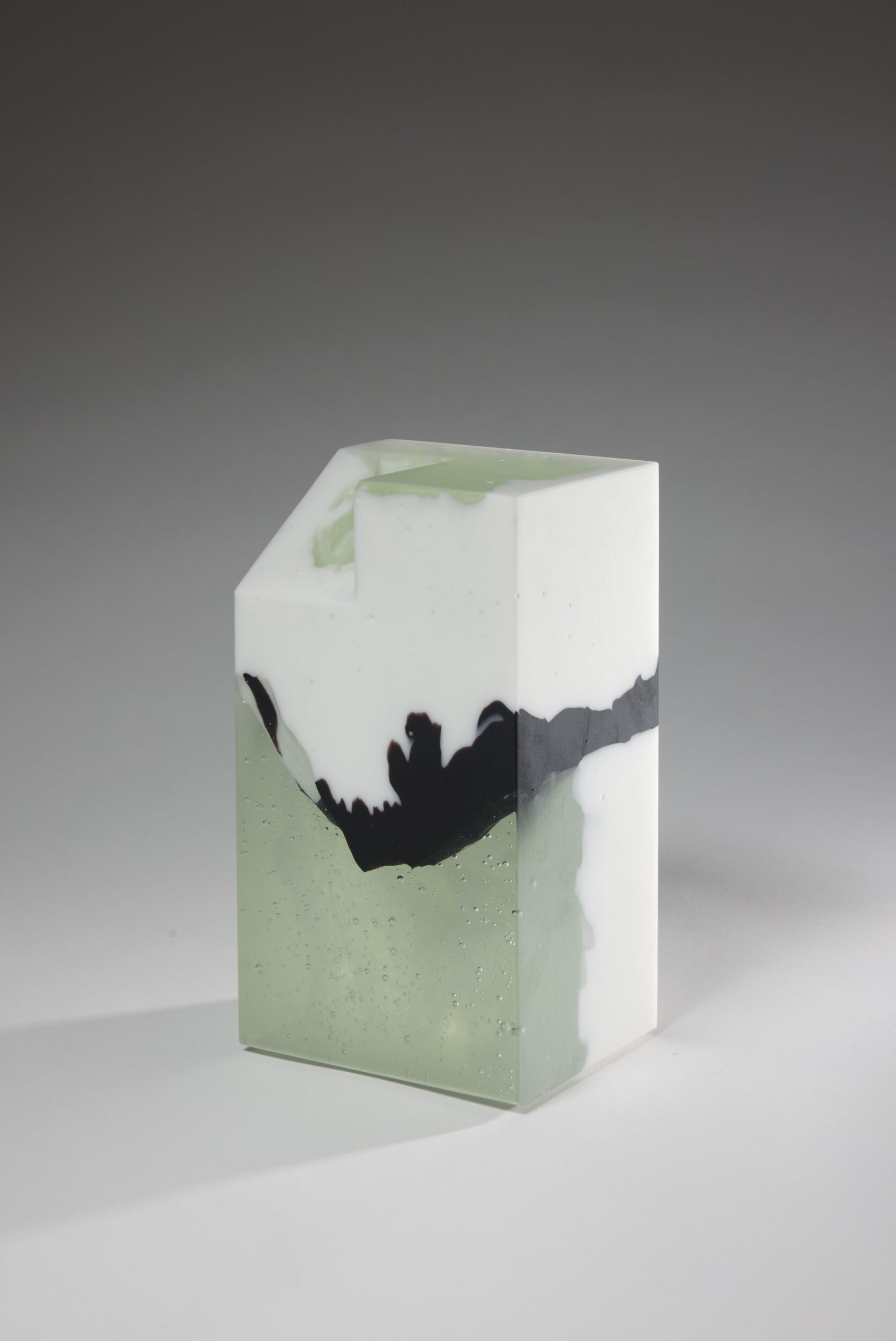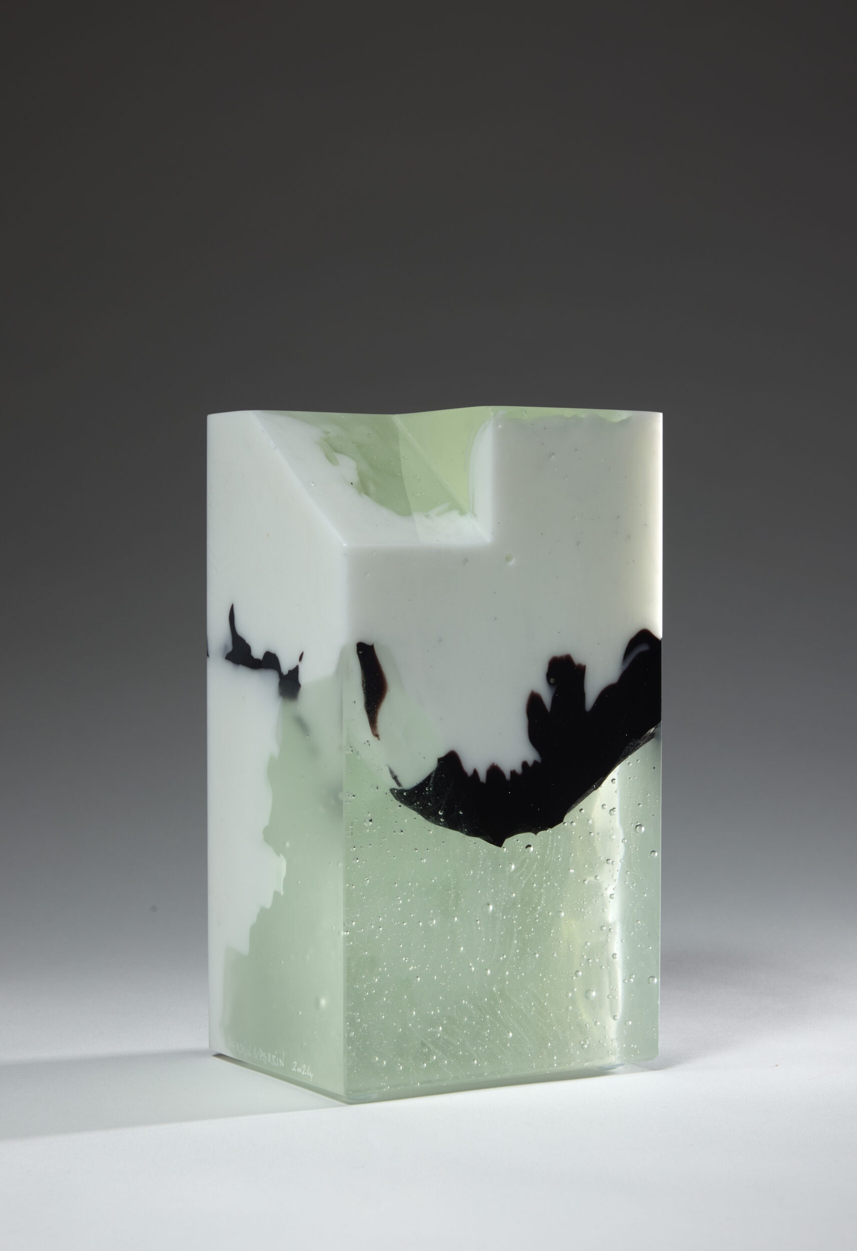 Martine and Jacki Perrin sculpt together as one, forming a duo enriched by their individualities. For over a decade they have explored the potential of ceramics in parallel with their practice of Far Eastern calligraphy. Glass became their preferred medium and they developed the unique method of “Build-in-Glass” which allowed them to constantly explore new boundaries and to continuously develop and renew their work. They create dense and compact blocks in which they sculpt both monumental and more intimate pieces, in unique shapes and colours. One of the distinguishing features of their work is the constant play on transparency, porosity and above all, light. They find their inspiration in scriptural and musical constructions, as well as in the revelation of geological processes or phenomena. Their work, born out of the four elements, has an intrinsic coherence and a unique beauty.