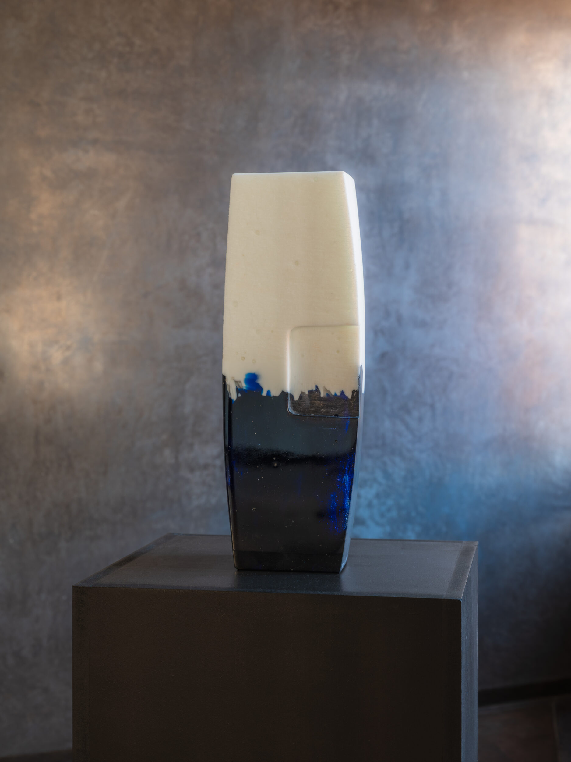 Martine and Jacki Perrin sculpt together as one, forming a duo enriched by their individualities. For over a decade they have explored the potential of ceramics in parallel with their practice of Far Eastern calligraphy. Glass became their preferred medium and they developed the unique method of “Build-in-Glass” which allowed them to constantly explore new boundaries and to continuously develop and renew their work. They create dense and compact blocks in which they sculpt both monumental and more intimate pieces, in unique shapes and colours. One of the distinguishing features of their work is the constant play on transparency, porosity and above all, light. They find their inspiration in scriptural and musical constructions, as well as in the revelation of geological processes or phenomena. Their work, born out of the four elements, has an intrinsic coherence and a unique beauty.