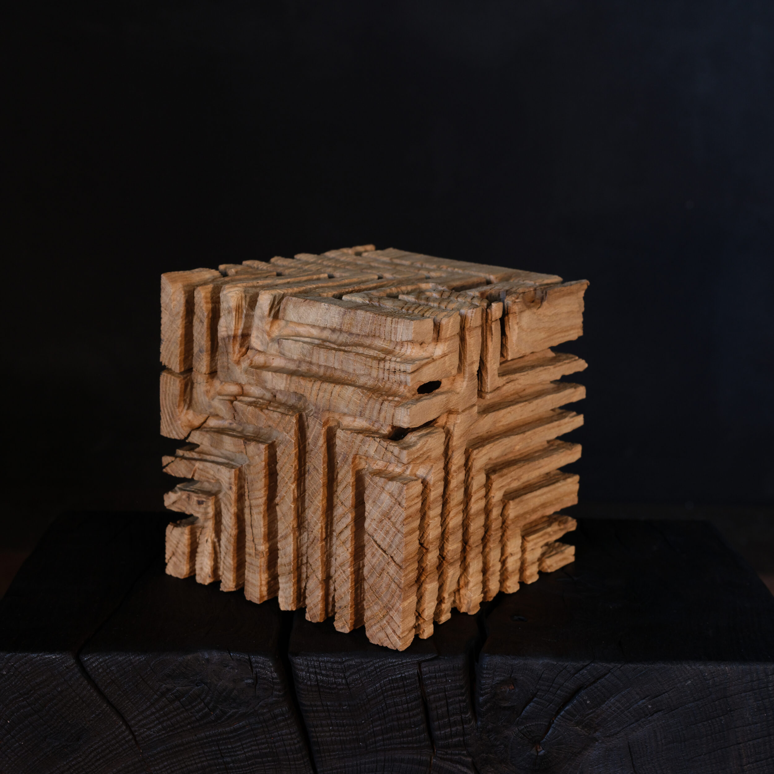 Les créations d’Etienne Moyat sont empreintes de son respect et de son amour pour la nature. Ebéniste de formation, il réalise des pièces uniques et monumentales, destinées à des projets haut de gamme pour des résidences particulières, des hôtels, des yachts. Il travaille directement à partir d’arbres : après avoir dessiné une esquisse, il le sculpte, le brûle, le brosse, le vernit, mais surtout lui rend hommage en tant que matériau vivant, vecteur d’émotion et d’expérience. Paradoxalement, son utilisation de la tronçonneuse comme outil de prédilection lui permet un geste libre et instinctif. Son travail, intimement lié au temps et au mouvement, occupe l’espace de lignes d’énergie fluides.