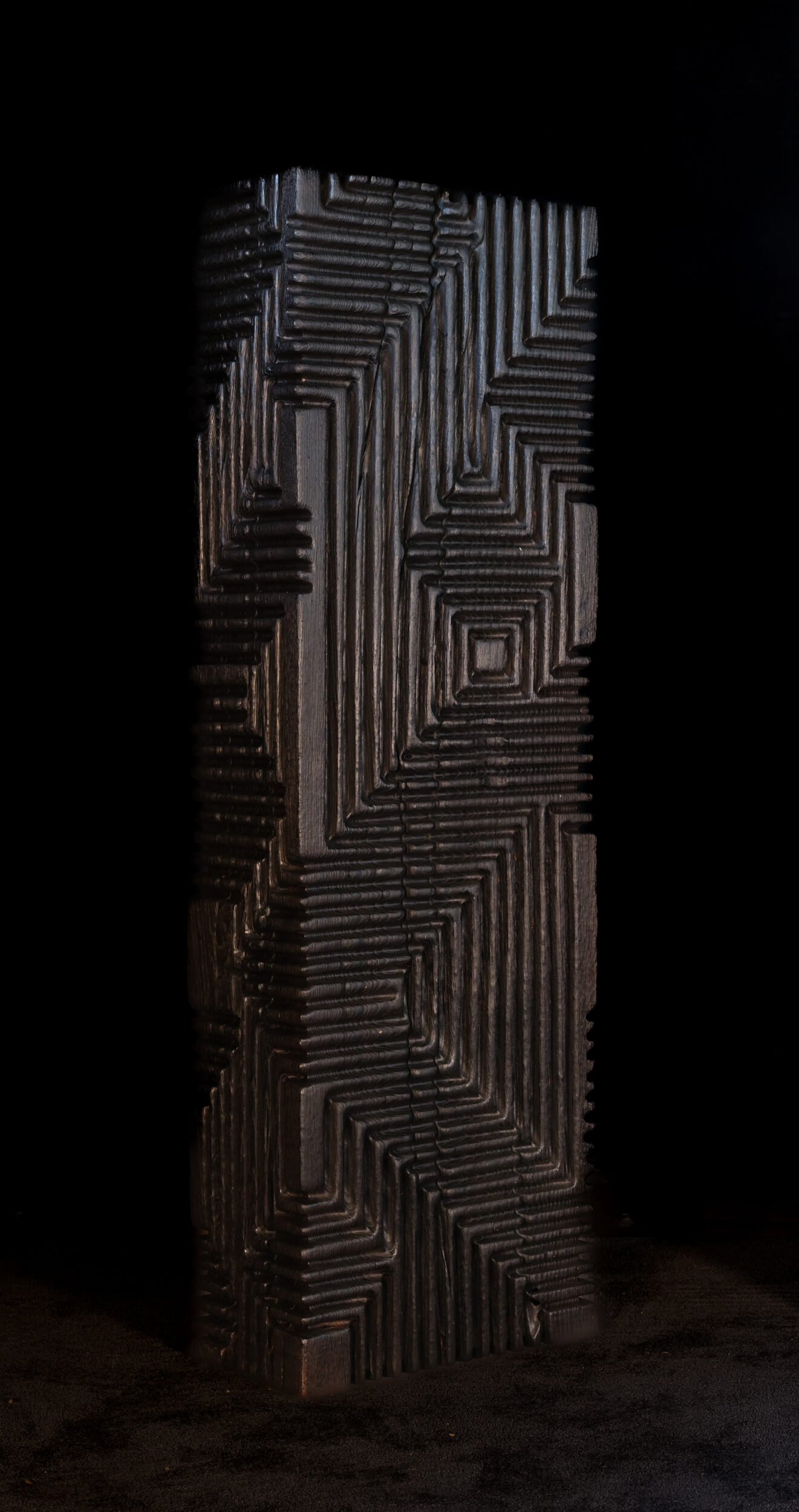 Les créations d’Etienne Moyat sont empreintes de son respect et de son amour pour la nature. Ebéniste de formation, il réalise des pièces uniques et monumentales, destinées à des projets haut de gamme pour des résidences particulières, des hôtels, des yachts. Il travaille directement à partir d’arbres : après avoir dessiné une esquisse, il le sculpte, le brûle, le brosse, le vernit, mais surtout lui rend hommage en tant que matériau vivant, vecteur d’émotion et d’expérience. Paradoxalement, son utilisation de la tronçonneuse comme outil de prédilection lui permet un geste libre et instinctif. Son travail, intimement lié au temps et au mouvement, occupe l’espace de lignes d’énergie fluides.
