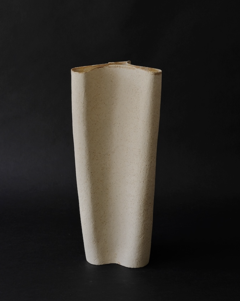 Linda Ouhbi (née en 1984, à Casablanca au Maroc), façonne à la main des œuvres en grès, privilégiant les techniques du modelage et du colombin plat. Ce processus lent et minutieux inscrit son travail dans une temporalité essentielle, où chaque pièce évolue au fil du geste. Loin d’une simple construction, cette méthode engage une recherche d’équilibre, une quête de la forme juste, où la finesse des parois devient une signature. Loin de l’objet utilitaire, ses pièces s’imposent comme des volumes autonomes, des sculptures où l’empreinte du temps et de la main se conjuguent. Inspirée à la fois par les savoir-faire ancestraux et les formes contemporaines, elle inscrit son œuvre dans un dialogue entre passé et présent, dans la continuité d’un langage céramique universel. Le travail des surfaces, en particulier des émaux qu’elle formule elle-même, ne se limite pas à un ornement. Il prolonge l’expression de la terre, révélant ses failles, ses reliefs, sa mémoire. Les teintes minérales et les effets oxydés confèrent à ses pièces une dimension presque archéologique, comme si elles avaient traversé le temps.
